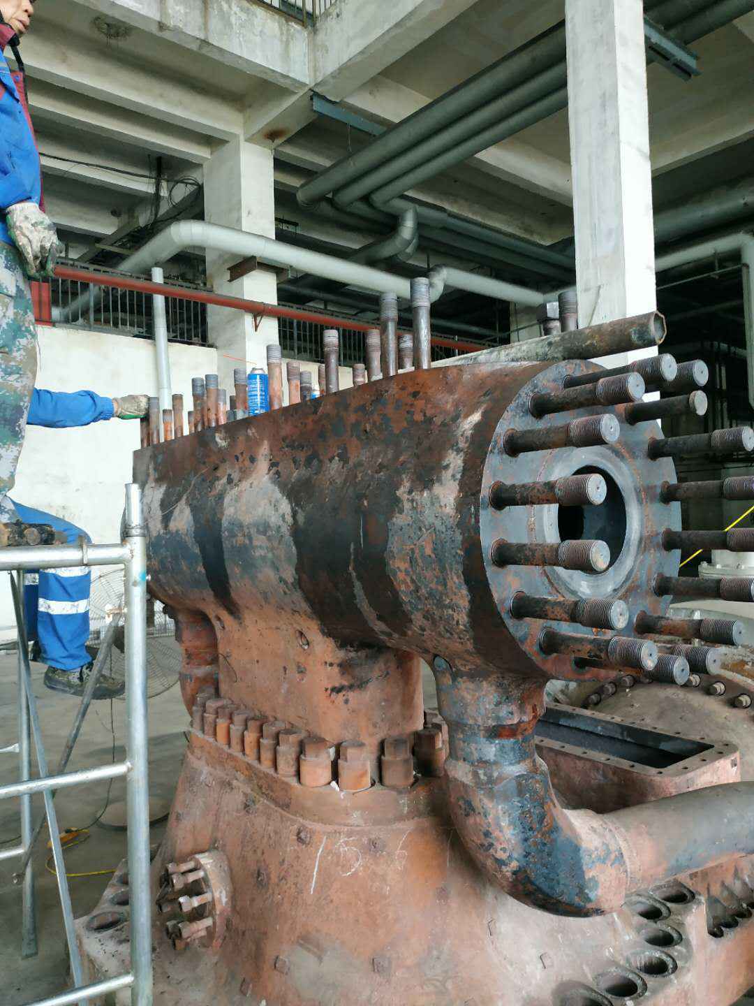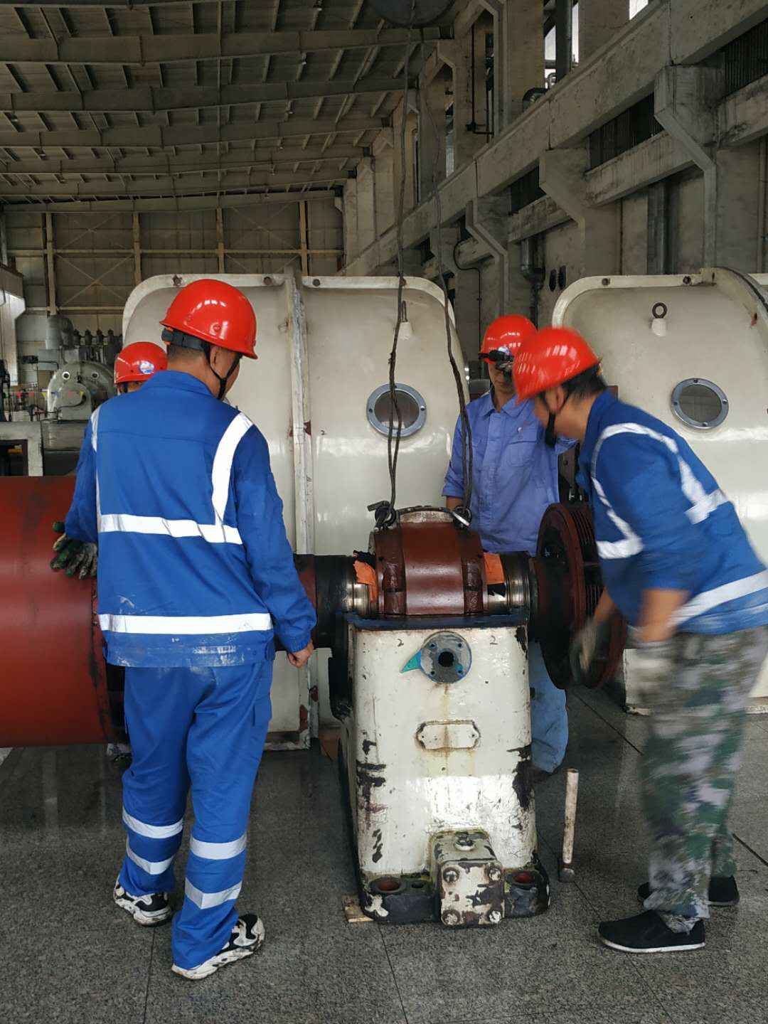 由长春圣安人工智能平台有限公司承建的山东海能化学有限责任公司机组B15MW背压式汽轮机组(原 C25抽汽凝汽式机组)大修工程现已完成凝结水泵、油站检修工作,发电机前后轴承座基础垫铁研磨工作,目前蒸汽室螺栓的拆卸工作及发电机定子与转子的清理工作陆续启动,下气缸吊隔板工作也在稳步进行中。